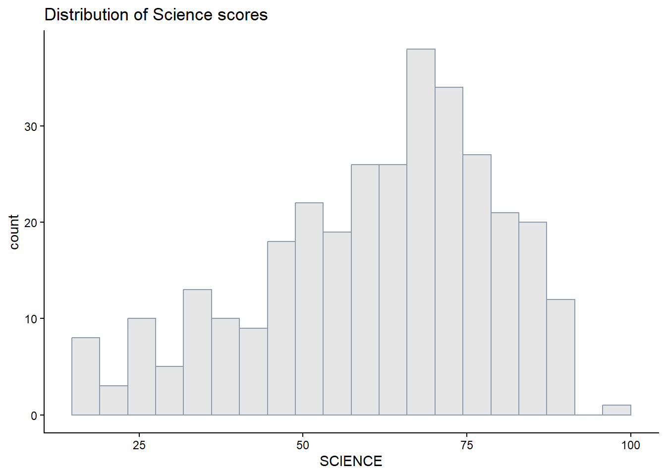 ggtitle("Distribution of Science scores") 3.1 Working with ggtheme package