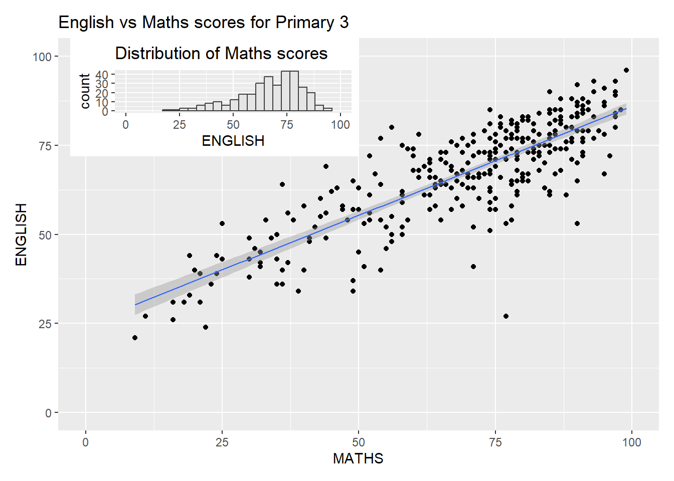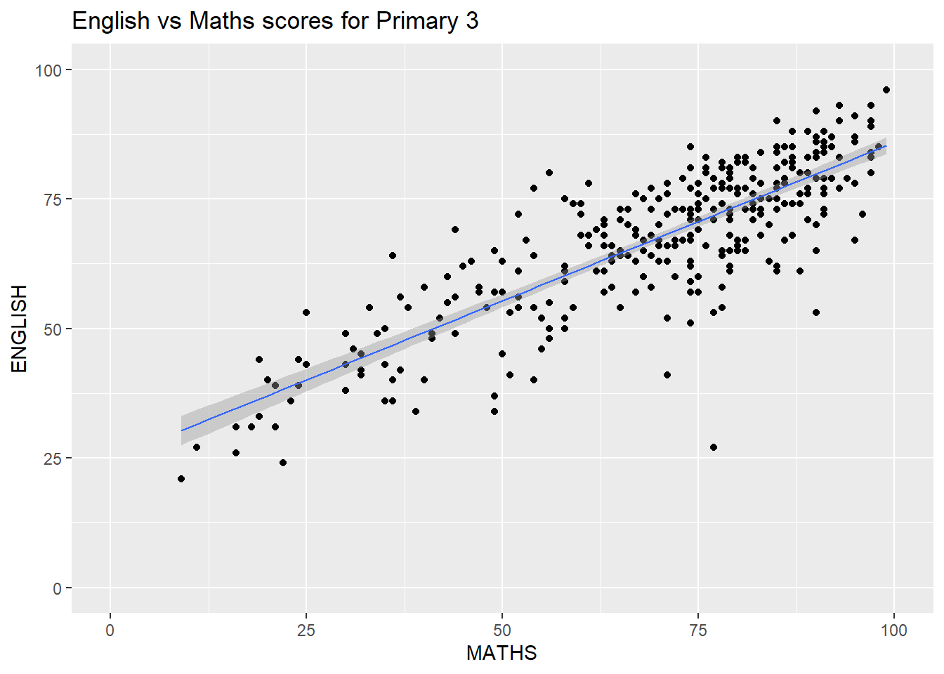 ggtitle("English scores versus Maths scores for Primary 3")2.1 Introduction of ggrepel