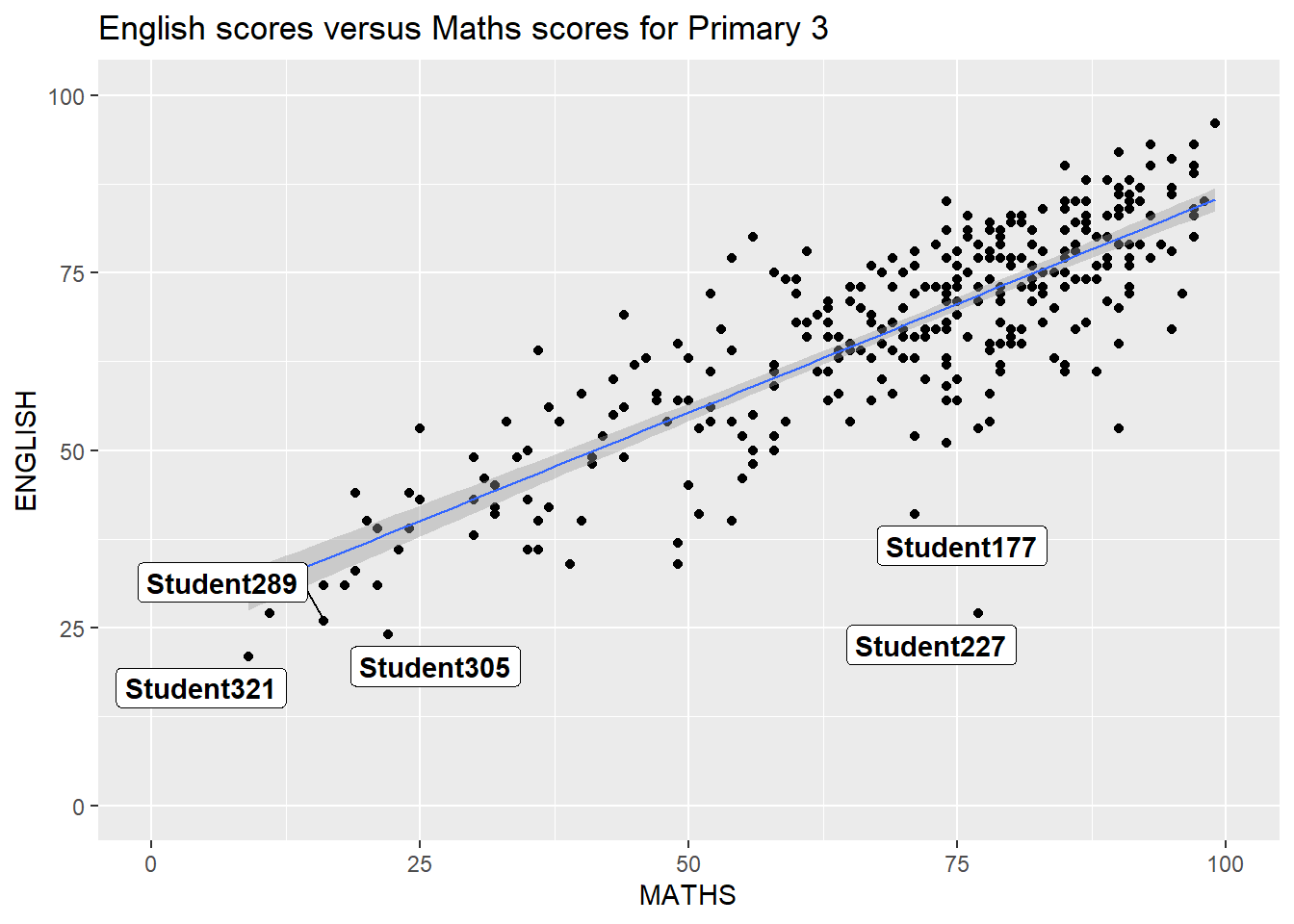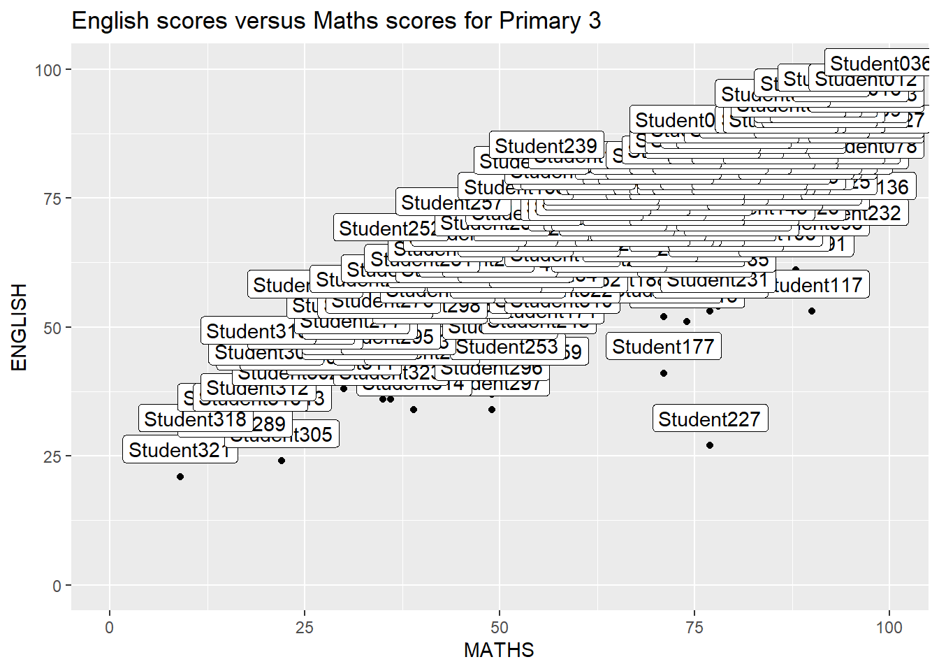 ggtitle("English scores versus Science scores for Primary 3")Benefits of ggrepel