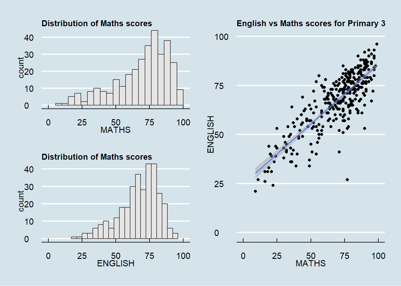 Year end examination grades of a cohort of primary 3 students from a local school.