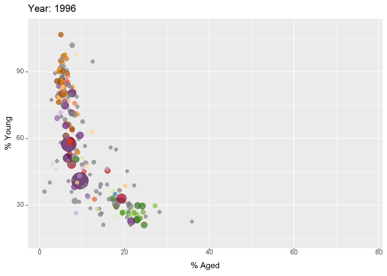 ggplot(globalPop, aes(x = Old, y = Young,