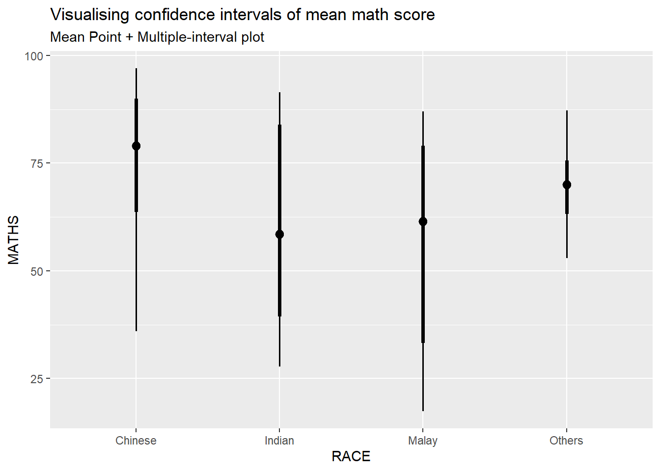 subtitle = "Mean Point + Multiple-interval plot")This function comes with many arguments, students are advised to read the syntax reference for more detail.