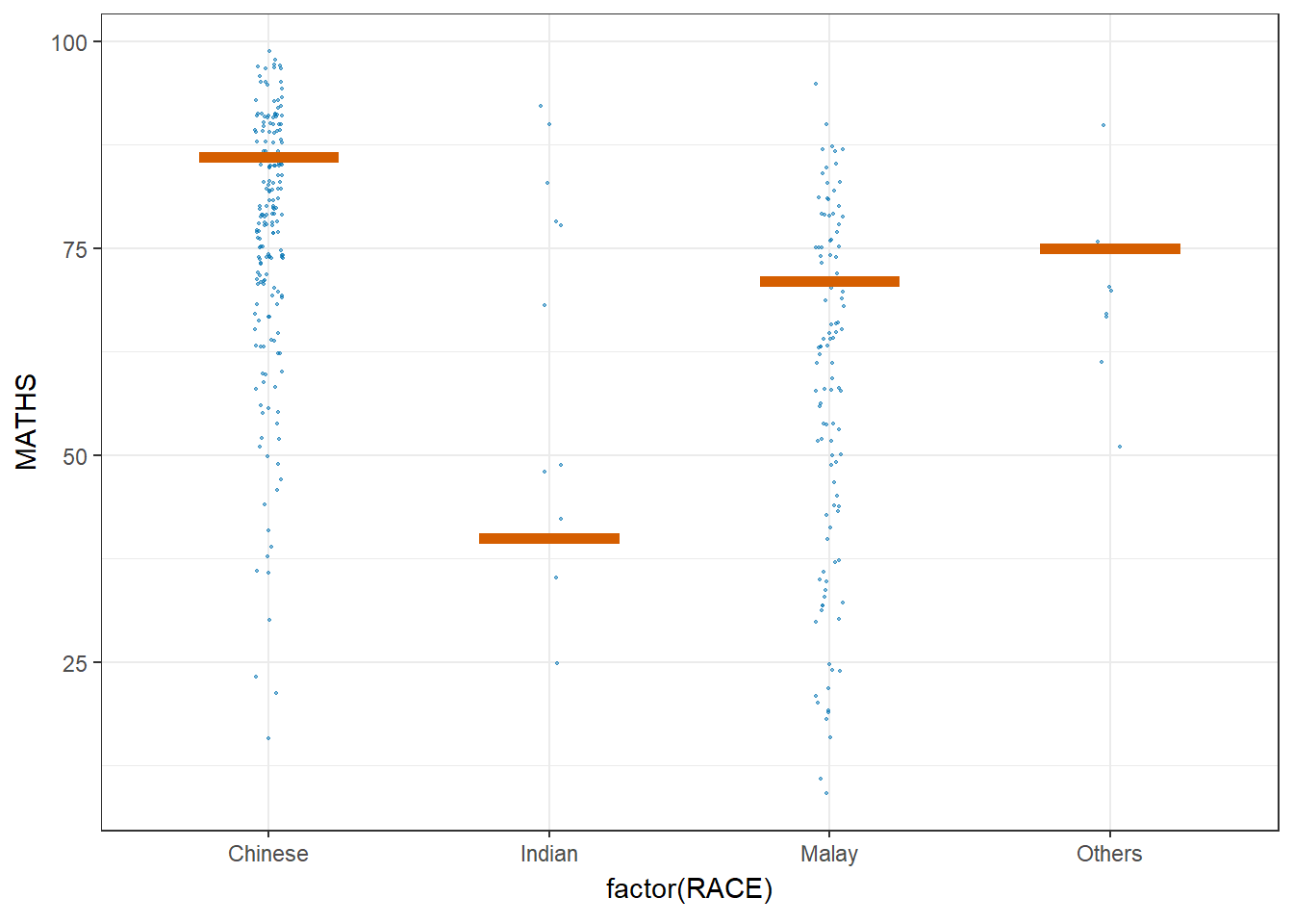 ggplot(aes(x = RACE, y = MATHS)) +