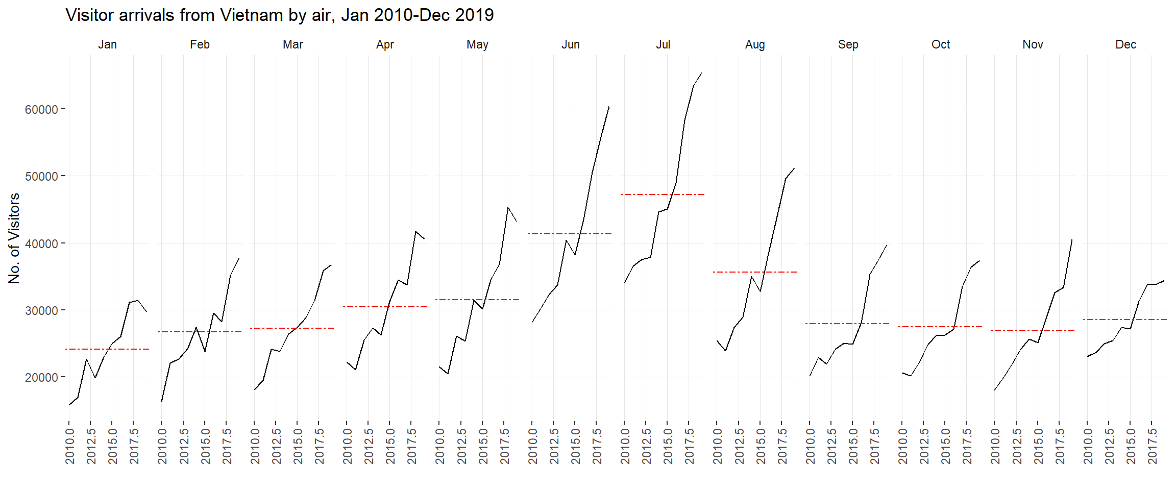 title = "Visitor arrivals from Vietnam by air, Jan 2010-Dec 2019") +