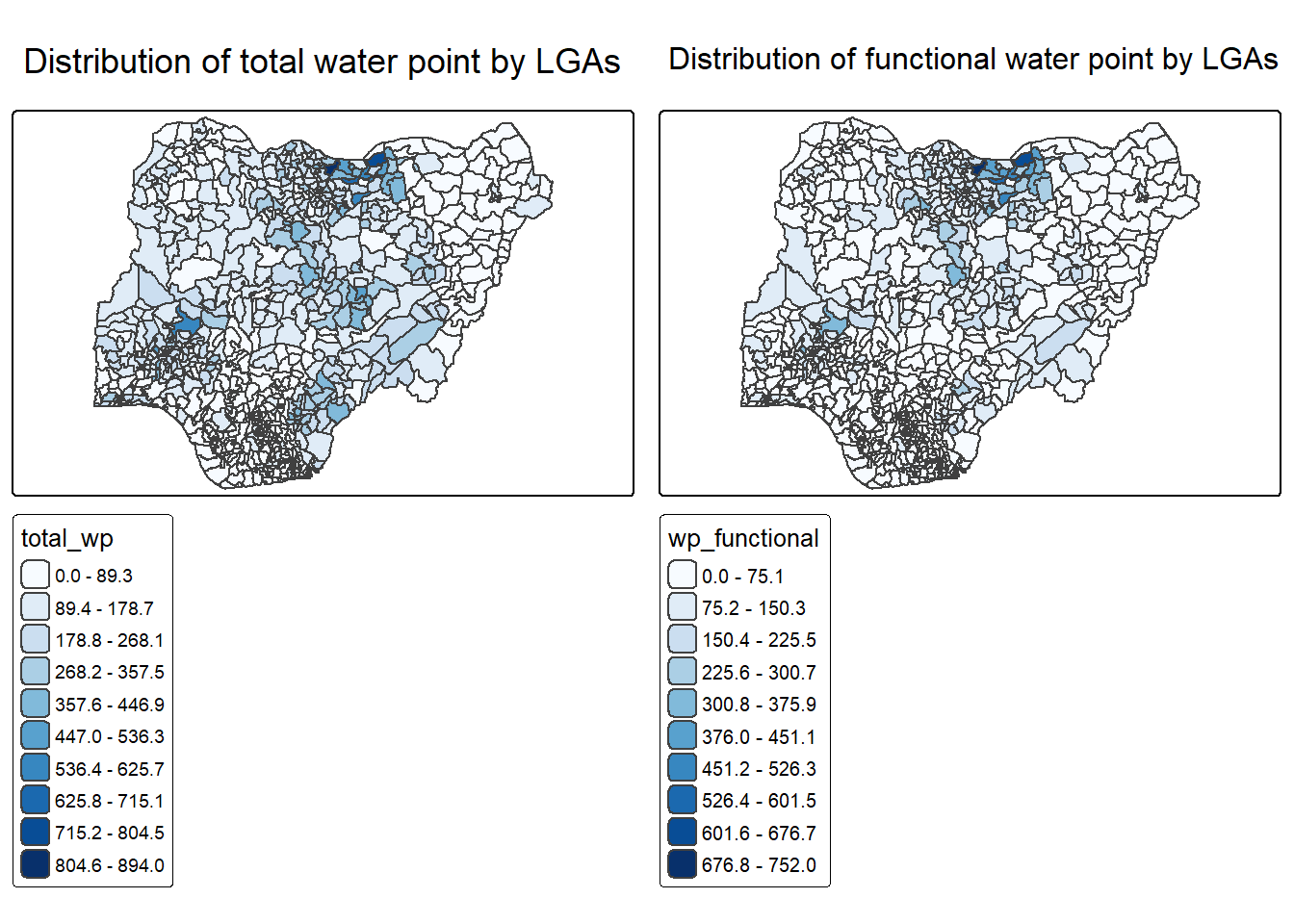 In much of our readings we have now seen the importance to map rates rather than counts of things, and that is for the simple reason that water points are not equally distributed in space. That means that if we do not account for how many water points are somewhere, we end up mapping total water point size rather than our topic of interest.