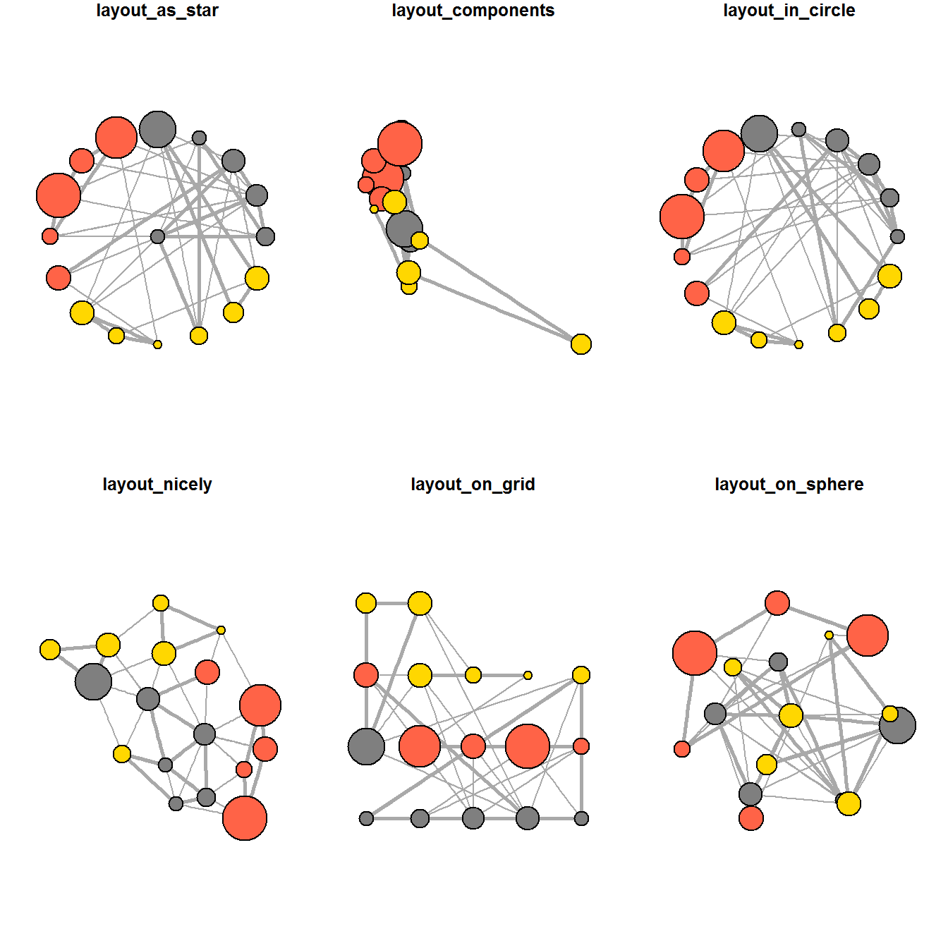 visIgraphLayout(layout = "layout_with_fr") 6.4 Working with visual attributes - Nodes
