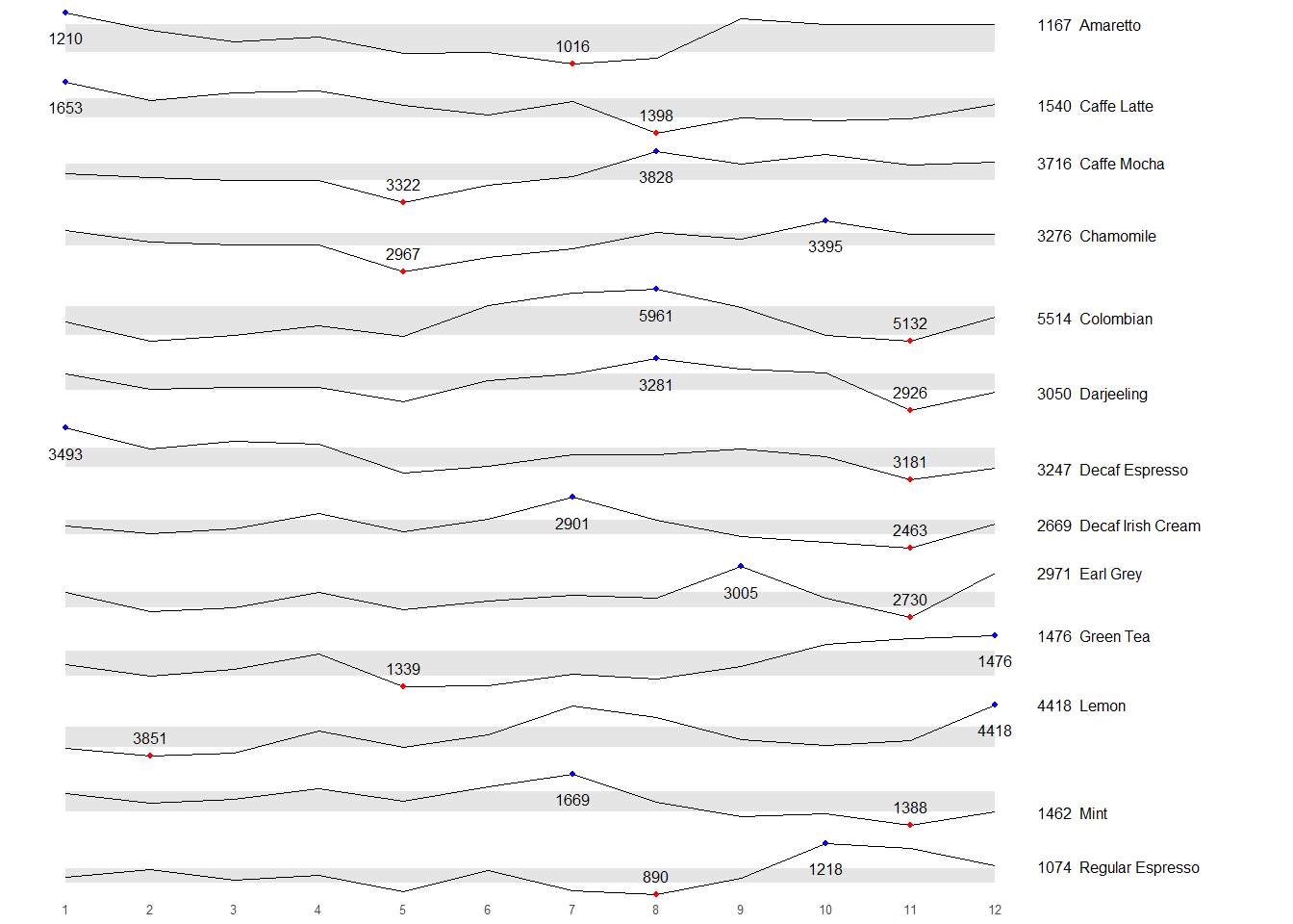 | Decaf Irish Cream | 2463 | 2901 | 2,648.25 |